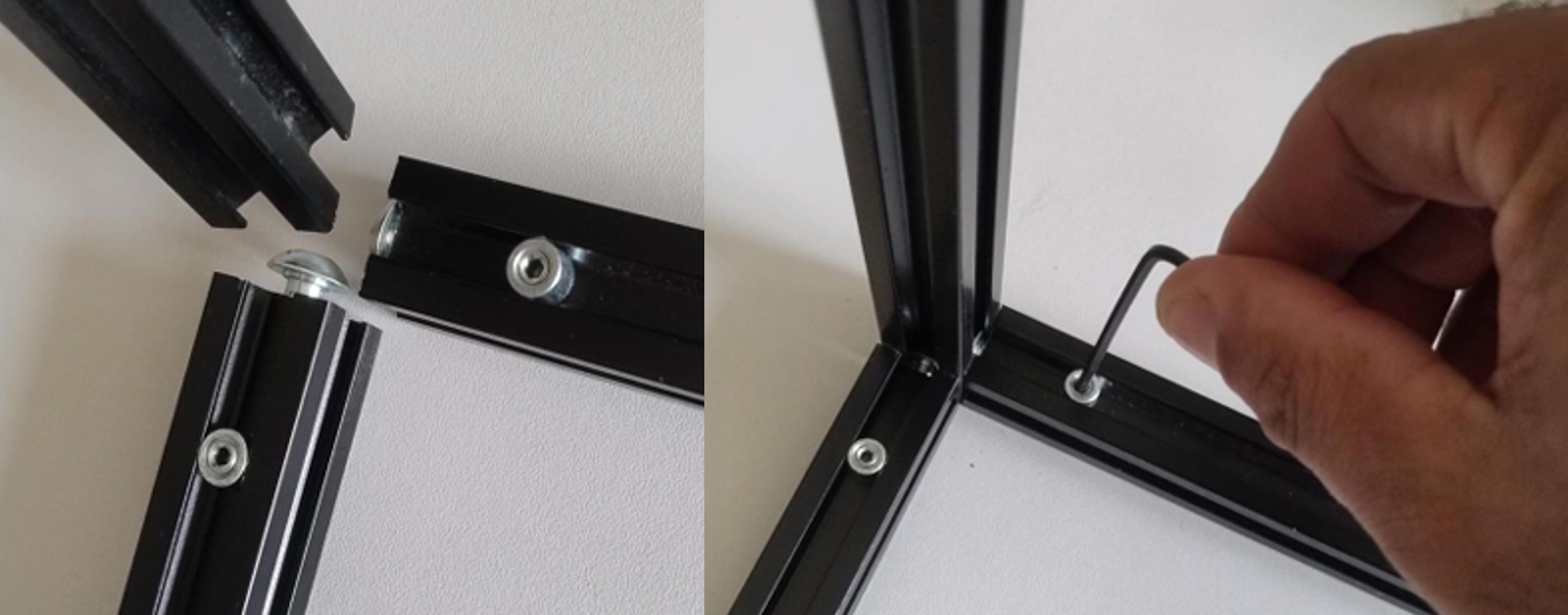 - Eight aluminum profiles (400 mm) must be drilled at both ends